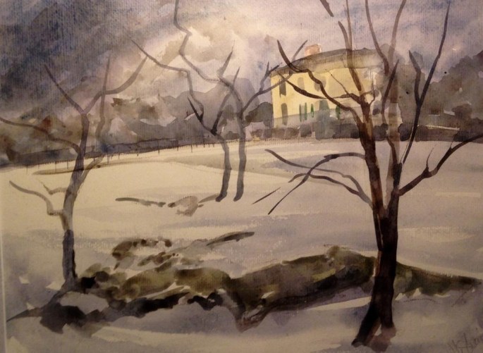 Lemon Hill in SnowWatercolor on Paper, 12"x 9″ Original – Price Available Upon Request Limited Edition Prints Available Upon Request