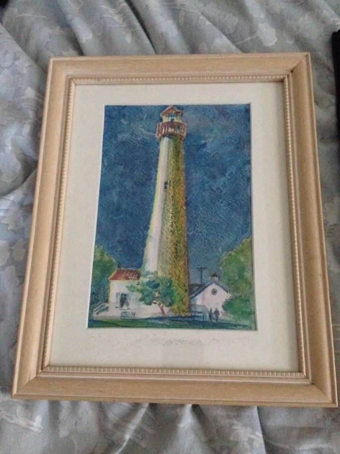 Lighthouse, 3″x7″, Watercolor on canvas on wood, SOLD: October 28, 2017. Kathy and Jeffrey Ackler, Ardmore, PA.